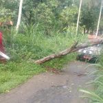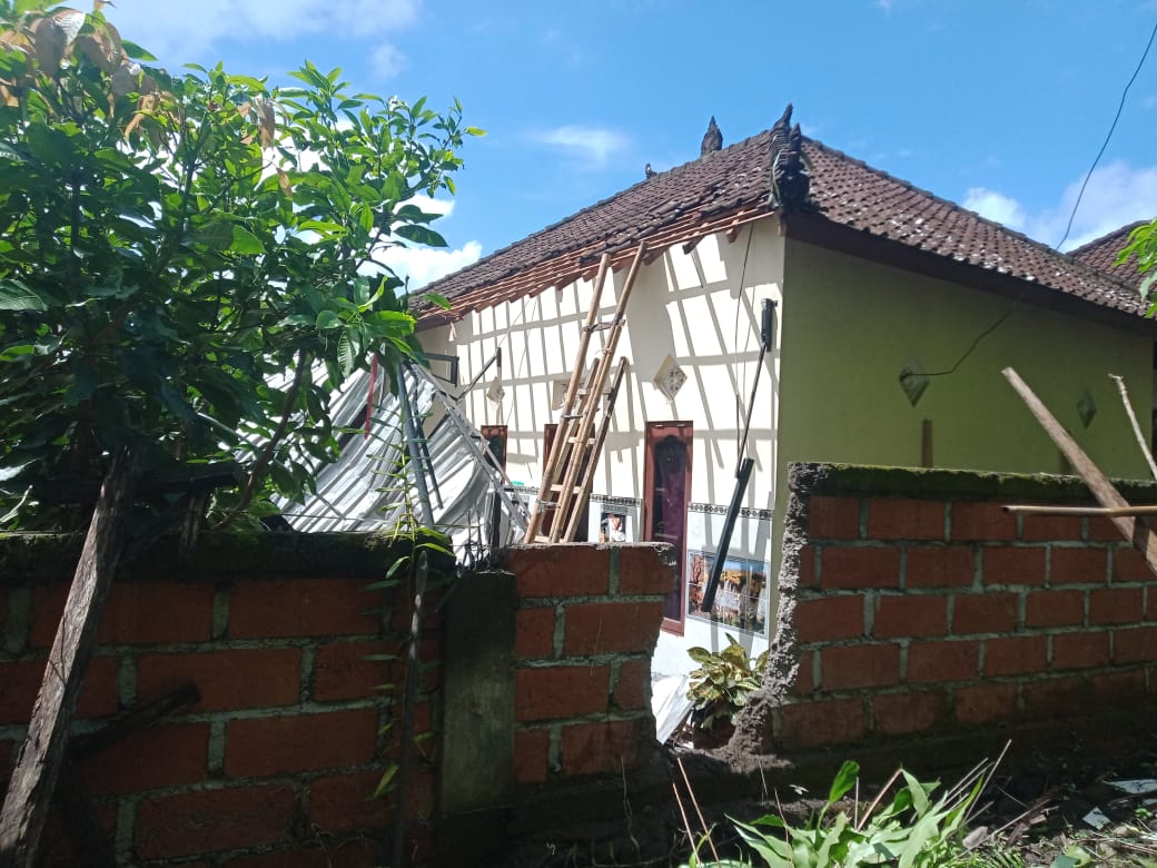 Telah terjadi pohon tumbang berjenis enau dengan panjang 30 m dengan berdiameter 30 cm yang menimpa emperan Spandek ukuran 5×6 m milik I Wayan Priana.