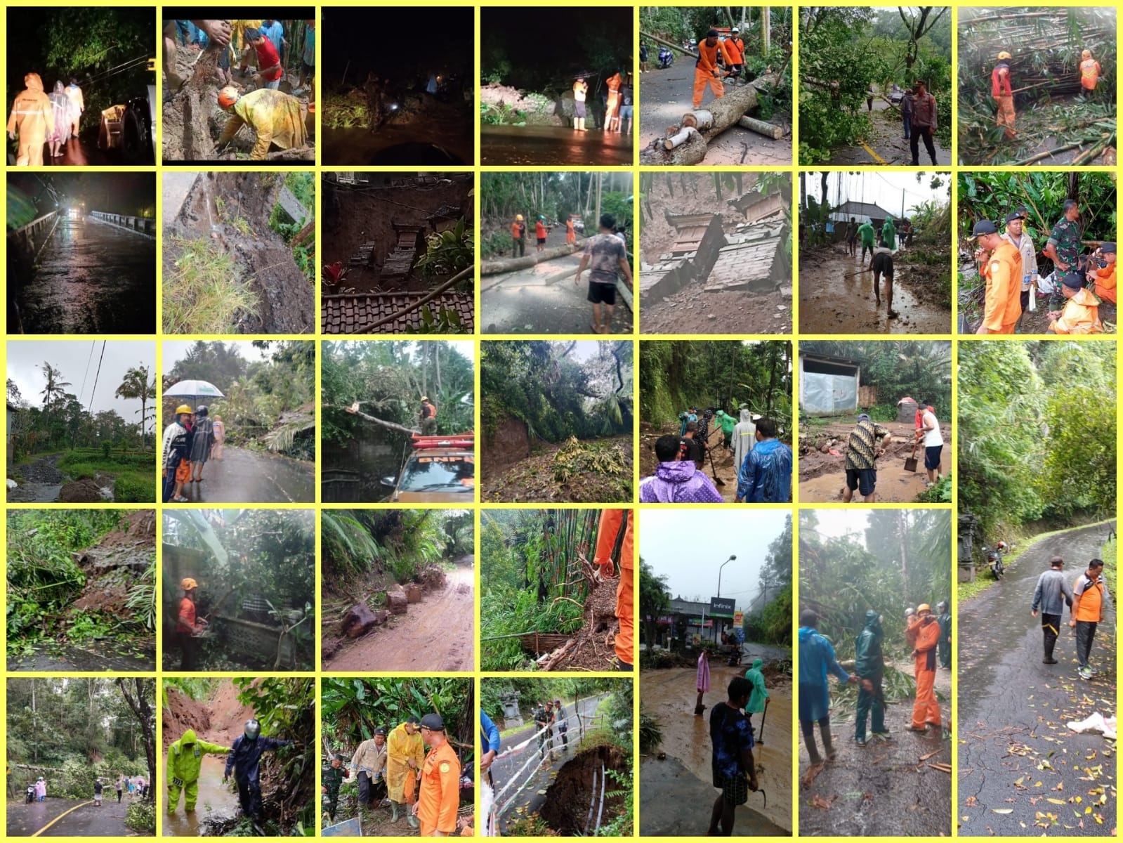 - Tanah longsor menimpa rumah milik An. I Nengah Naris ( 2 KK) di Dusun Ngis Kaler, Desa Tri Buana, Kec. Abang, kerusakkan Pelinggih, Dapur, dan Seke enem, jumlah keluarga mengungsi 6 orang ke kerabat terdekat rincian pengungsi 3 lansia, Balita 1, Dewasa 2 ( belum di assessment )