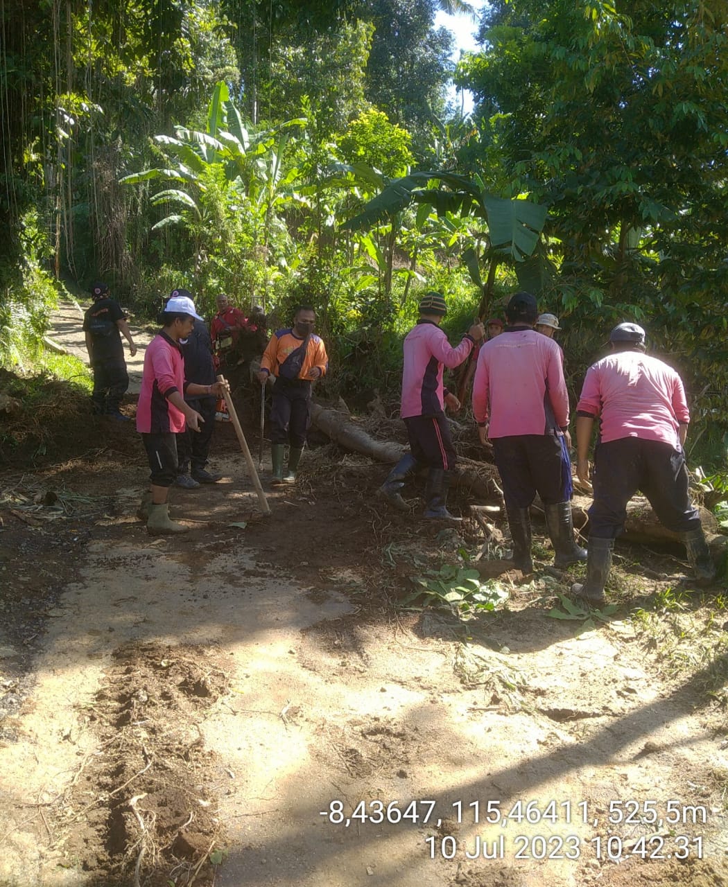 Senin, 10/07/2023, Penanganan lanjutan tanah longsor bersama PUPR Kim dan TRC BPBD Karangasem Pukul 09:20 wita s/d selesai pukul 11:40 wita Ruas jalan Babakan – Umasari Br. Dinas Umasari Kauh, Desa Peringsari, Kec. Selat. TRC BPBD melakukan Penanganan sementara pemotongan kayu yang melintang, saat ini akses sudah bia dilalui roda 2. Penanganan akan dilanjutkan besok pagi oleh warga.