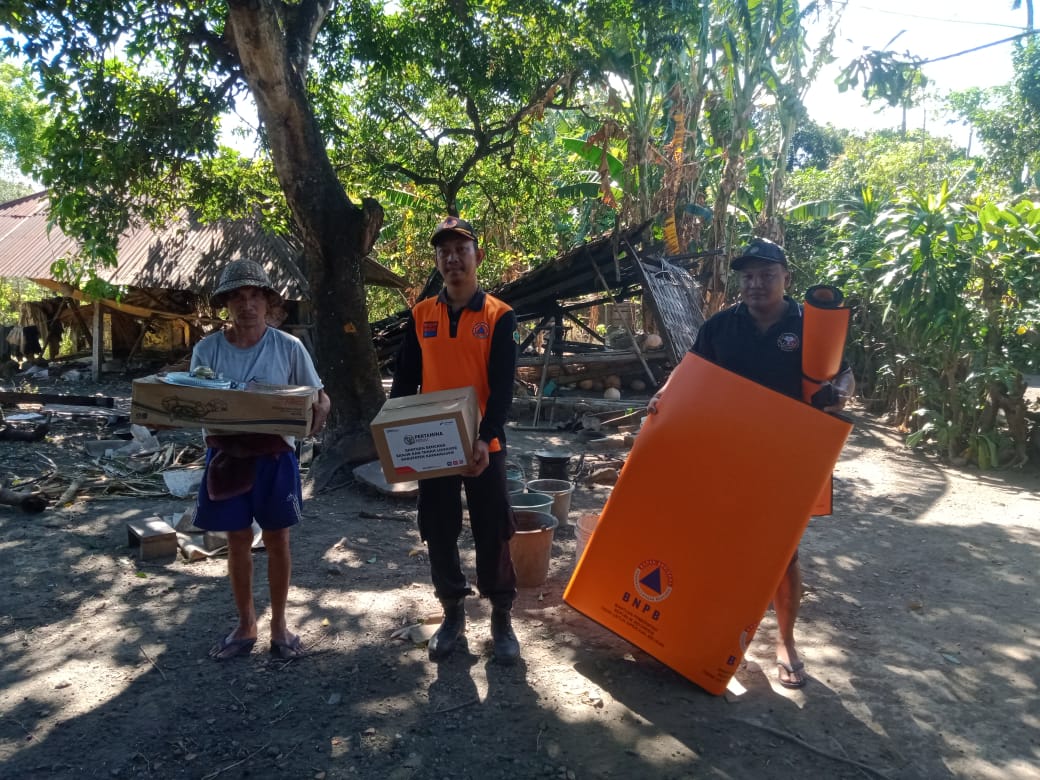 Bantuan diserahkan langsung oleh TRC BPBD Kab. Karangasem dan di saksikan oleh Kepala Wilayah dan Pemilik Rumah.